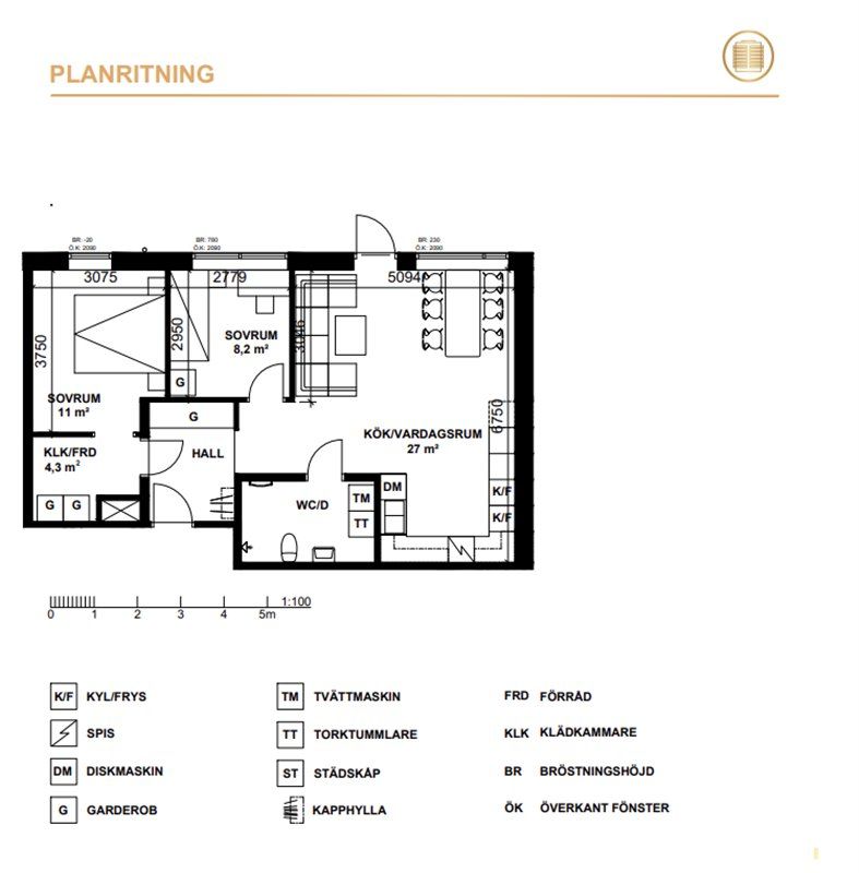 11,000 kr/month, min. 3 bedrooms