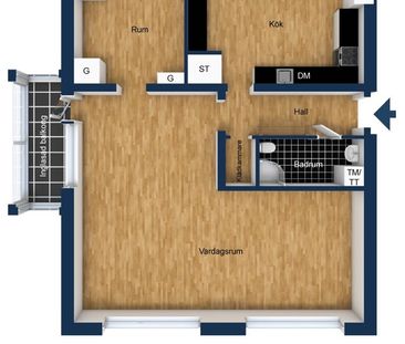 Beskrivning Välplanerad 2:a med garderobsförvaring i hal...