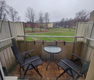 En mysig tvårumslägenhet med balkong och utsikt över park...