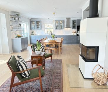 Välplanerat hus med öppen planlösning mellan kök och vard...