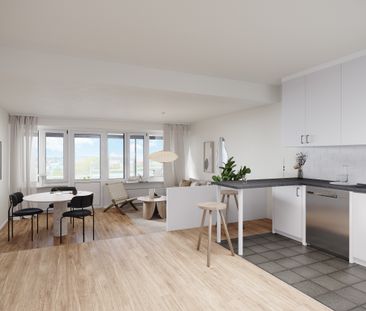 Kvadratsmart 2:a med ljus och öppen planlösning mellan kö...