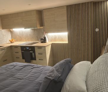 Ett nyrenoverat och fullt möblerat rum med egen balkong u...