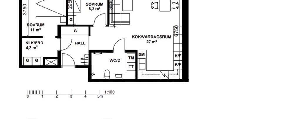 11 000 kr/månad, min. 3 rum