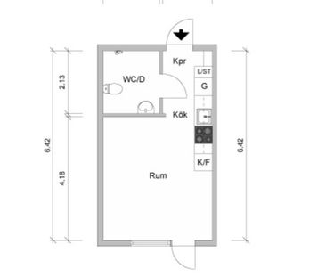 Ett rum och kök med modern hotellkänsla! 1 rok med hög s...