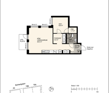 Två rum och kök med uteplats mot innergården. Härliga soc...