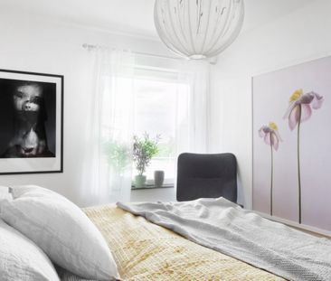Hemmet är ljust och fräscht med vitmålade väggar som stan...