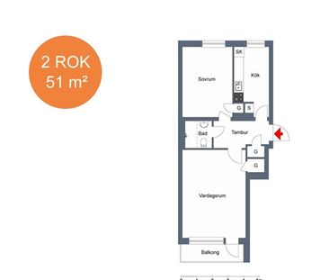 Hyresrätt på Kvarngatan 6 A i Kristianstad med 2 rum (51 ...