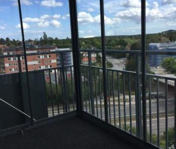 Moderna trea med öppen planlösning och stor inglasad balkong