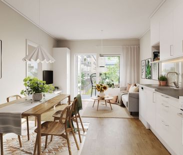 I kvarteret Rödängs trädgårdar erbjuds lägenheter från 33...