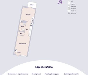 Lägenheten ligger på våning 5 (hiss finns) och har en öpp...