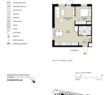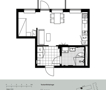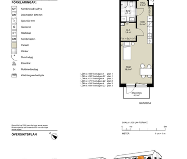 1 rum och kök med öppen planlösning. Lägenheten har parke...