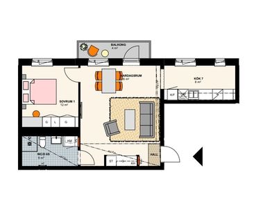 Denna mysiga 4-rumslägenhet med kök erbjuder ett trivsamt...