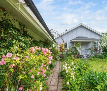 Enplansvilla med trädgård parkering..